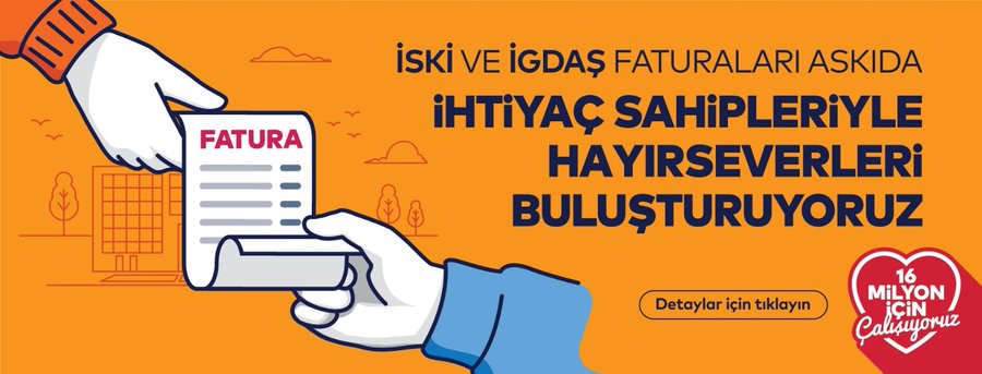 “Aylık faturalarını ödemekte zorlanan ihtiyaç sahipleriyle, bu ihtiyaçları onlar adına gidermek isteyen hayırsever vatandaşlarımızı bir araya getiriyoruz.” Sözleri ile Büyükşehir Belediye Başkanı Ekrem İmamoğlu tarafından tanıtılan sitede fatura ödeme işlemlerinde vatandaşların birbirine yardımcı olması amaçlanıyor.